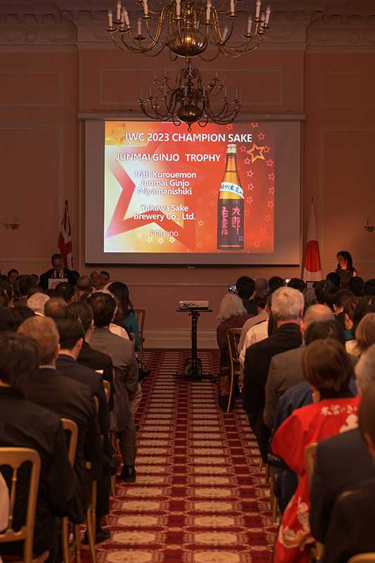 After the speech from the Ambassador, Mr Maegaki and IWC Director Mr Andrew Reed, the champion sakes and trophy winning sakes were re-announced in front of all the guests.