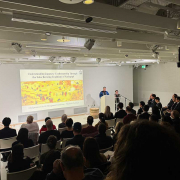 The event focused on the sake brewing traditions and artisanal techniques that have been preserved and passed down in the Nada area, and included a lecture by the research director of Kiku-masamune Sake Brewery and a barrel-making demonstration by the head woodworker of Kenbishi Sake Brewery.