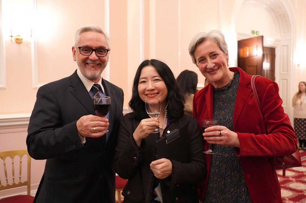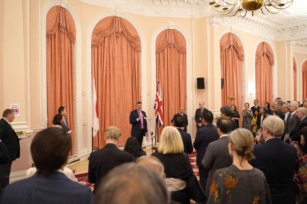 Lord Rumi Verjee, Japan Society trustee Yasuko Fukuda, and Minister Shuji Maeda shared their reflections on the year.