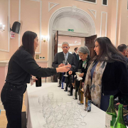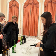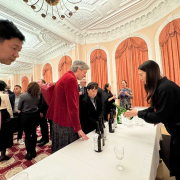 Mio sparkling sake was served as a welcome drink, and over 20 sake bottles were lined up at the sake stand. The room was filled with many familiar faces and a lovely array of new members. They enjoyed a catch-up over generously provided sake and canapes, while ambassador Suzuki joined in to celebrate the festive season.